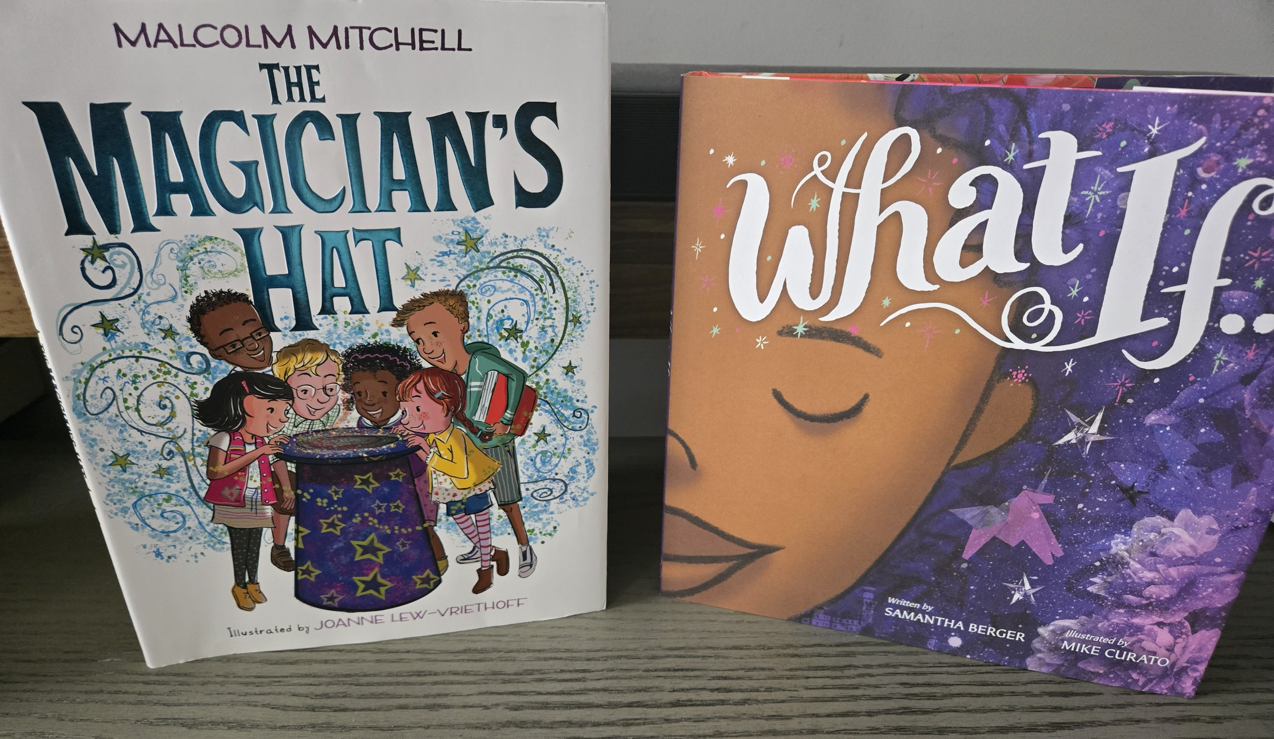 Two weeks ago I had the opportunity to be the Mystery Reader at my daughter’s school. I went back and forth about what books to read and finally landed on “What If” by Samantha Berger and “The Magician’s Hat” by Malcolm Mitchell. The beautiful cover of “What If” drew me in as I browsed the library display at work, and I was familiar with “The Magician’s Hat” from an author’s visit a while back at work.